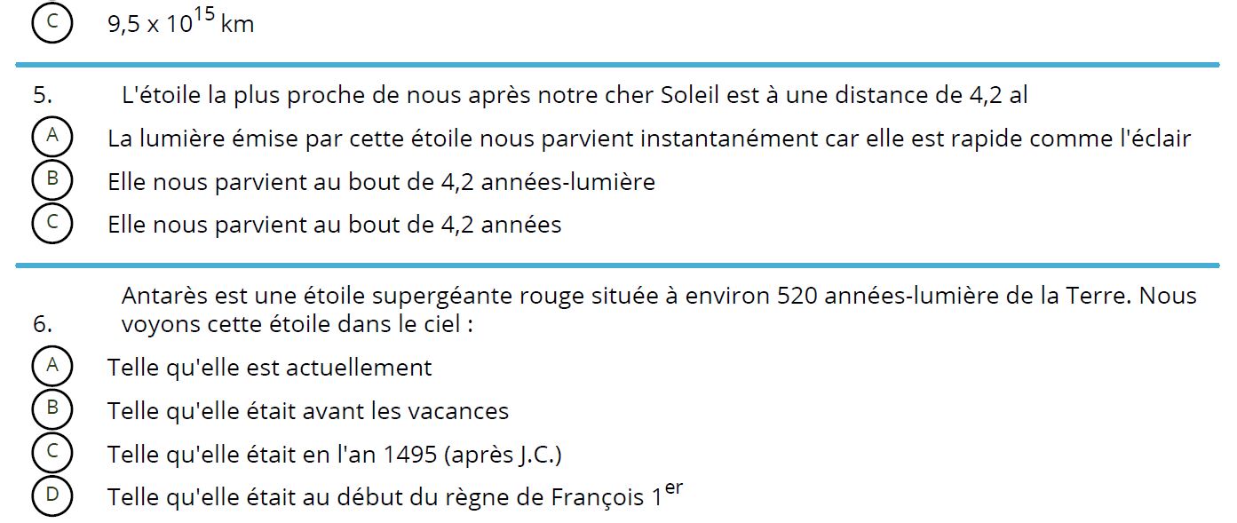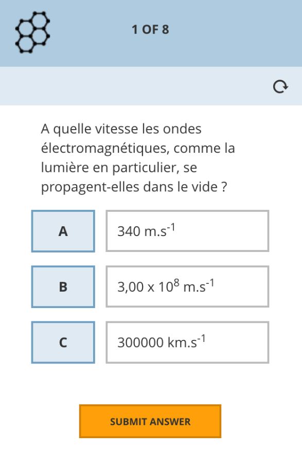 Ci-dessous, une question sur l’Univers (niveau seconde), telle que l’élève la visualise sur son smartphone :