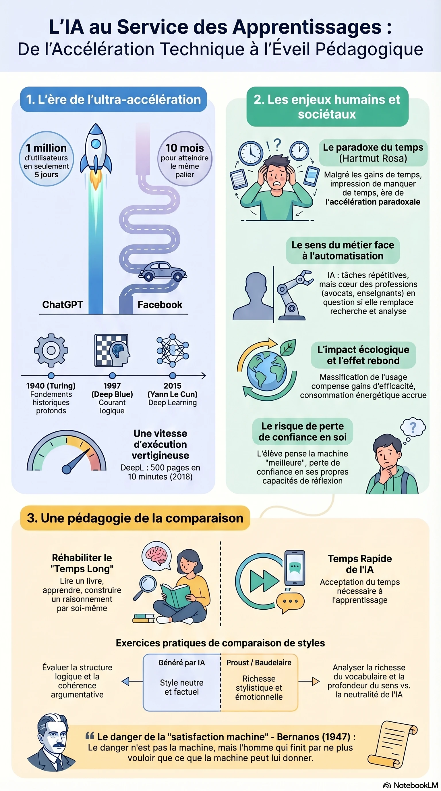 - Les enjeux sociologiques : tension entre le gain de temps technique et le manque de temps vécu (HARTMUT Rosa), ainsi que le sens du métier face à l'automatisation de certaines tâches ;