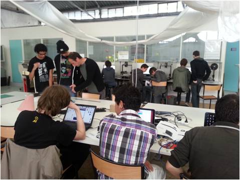 A l'instar de l'expérience MUSEOMIX (http://www.museomix.org), il s’agit de constituer une équipe composée d’un codeur, d’un designer, d’un spécialiste lié au domaine, d’un bricoleur, d'un communicant et d'un spécialiste de la médiation. Les élèves créent des machines sur une thématique.