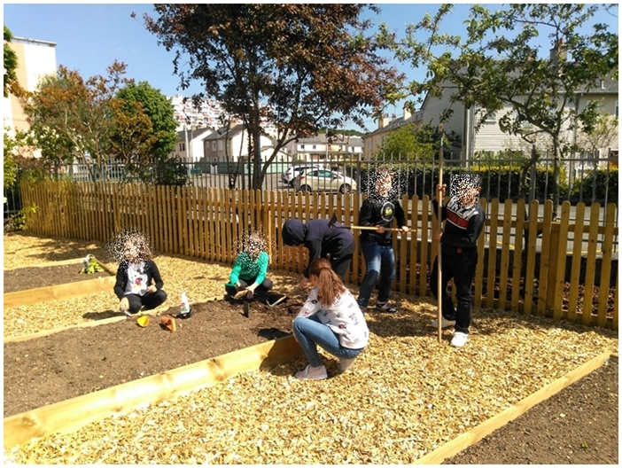 Entrainés sans contrainte dans le projet de jardinage, les élèves entrent de plein pied dans les problématiques et les enjeux du développement durable. L’idée était de créer un jardin scolaire propre à l’histoire de l’école, de sa nouvelle architecture, de son environnement urbain, des enfants et des adultes qui y vivent.