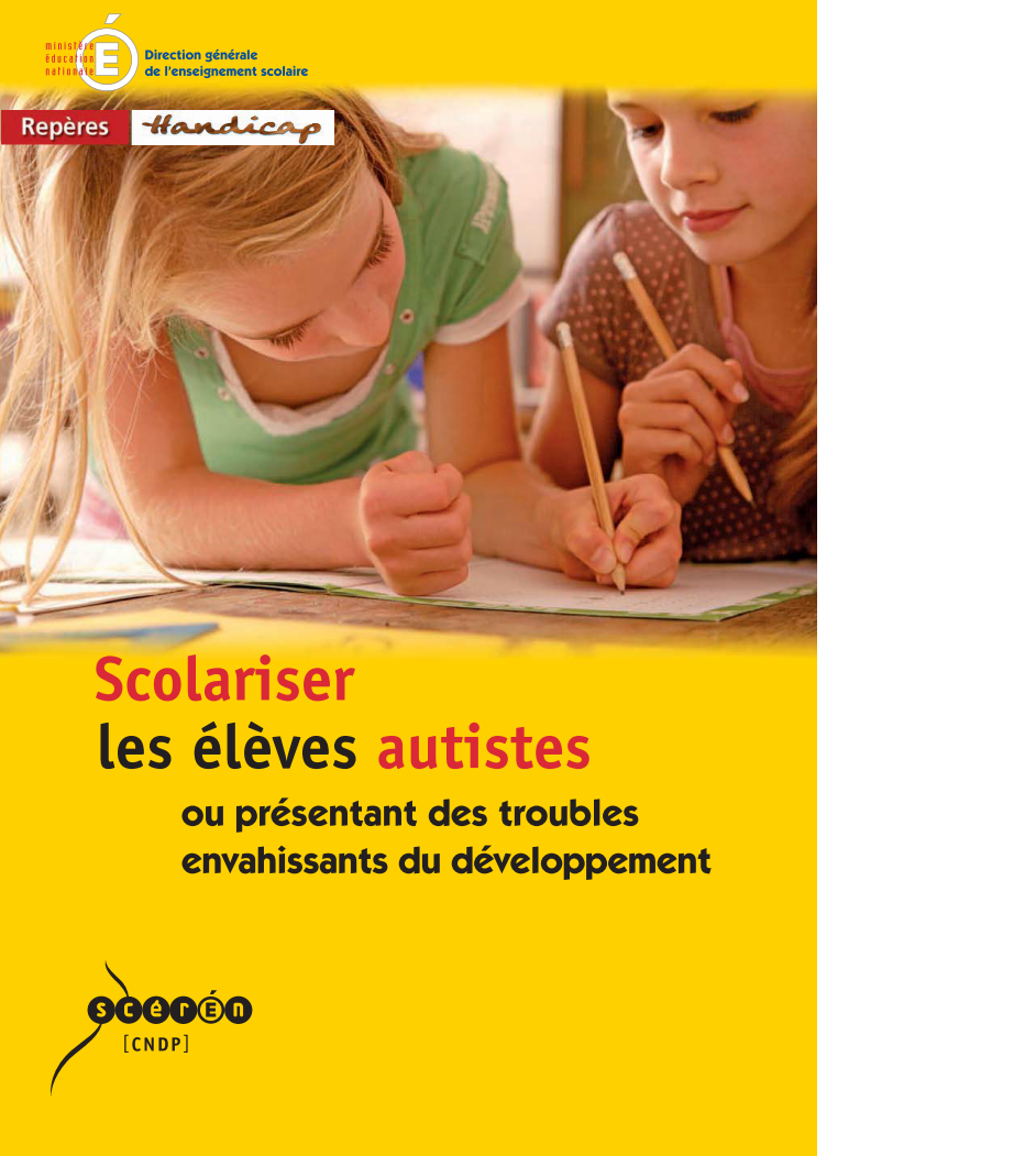Les conseils proposés dans ces guides ne sont pas à utiliser systématiquement avec tous les élèves avec troubles autistiques. Il s’agit de pistes de réflexion pour un meilleur accompagnement. L’observation des besoins spécifiques de l’élève et le travail en partenariat avec les enseignants, les familles et les partenaires restent des pré-requis incontournables pour l’efficience de l’accompagnement. L’AVS est sous la responsabilité pédagogique de l’enseignant et il met en œuvre les adaptations défi nies lors du travail coopératif avec ce dernier.