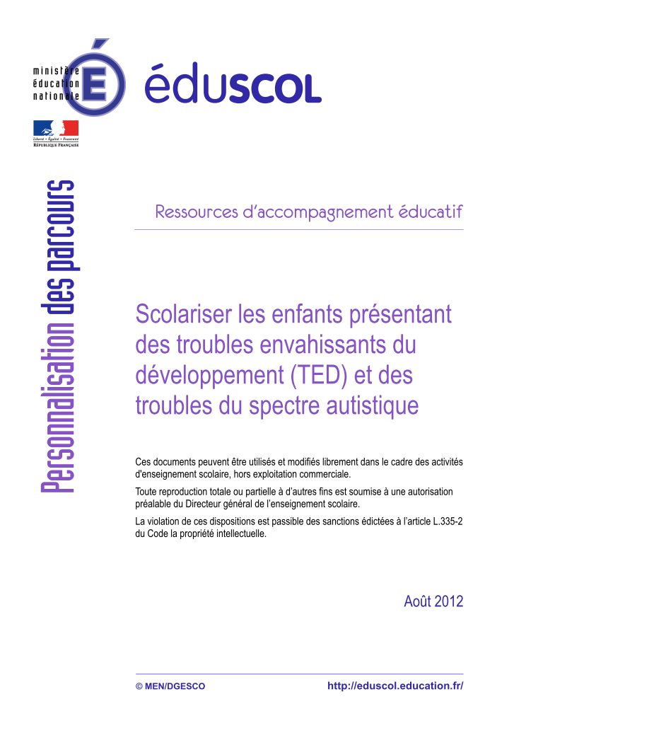- Trois guides ayant pour but d'aider l'accompagnement des élèves TED par les AVS.