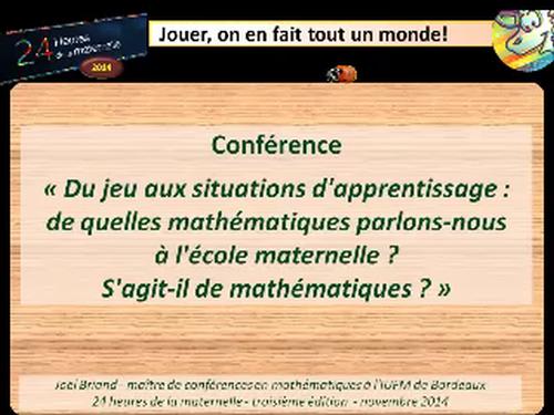 Conférence de monsieur Joël BRIAND, maître de conférences en mathématiques à l'IUFM de Bordeaux « Du jeu aux situations d'apprentissage : de quelles mathématiques parlons nous à l'école maternelle ? S'agit-il de mathématiques ? »