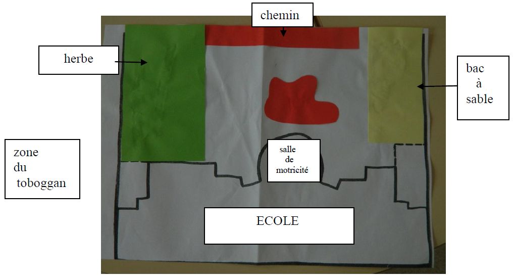 Les élèves ont ensuite travaillé sur la représentation en plan de la cour de récréation. Ils devaient placer les endroits où les engins roulants n'ont pas le droit d'aller. Cela en vu de l'aménagement d'un parcours dans la cour avec des panneaux de signalisation.