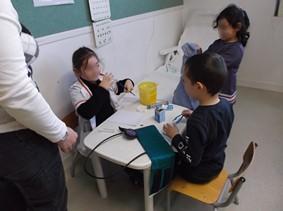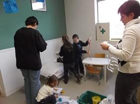 Nous sommes très satisfaits du projet : -les enfants ont immédiatement investi le coin jeu, ils aiment autant faire le docteur que le malade. -les règles ont tout de suite été appliquées : il y a un docteur ( il met la blouse ) , un patient ( il s'allonge sur le lit ) et au maximum trois patients ( ils attendent dans la salle d'attente sur trois chaises ) . -Les enfants de différents âges contribuent à rendre ce coin très riche en actions et en langage( les GS ont des gestes plus sûrs et parlent plus que les PS qui aiment bien jouer avec eux car sans que nous intervenions ils jouent naturellement ensemble ). -les parents ( surtout ceux qui ont participé aux 24heures de la maternelle ) viennent jouer avec eux au moment de l 'accueil . -le coin jeu est propice aux séances de langage : l' observation du comportement des enfants montre que les enfants connaissent bien ce milieu , ils reproduisent des gestes très spécifiques ( mettre le stéthoscope autour du cou , le poser sur le cœur en soulevant les vêtements , tendre le bras pour le tensiomètre ...). Nous travaillons beaucoup le langage en situation : les enfants disent ce qui 'ils font , ce qu 'ils ressentent ( surtout quand ils jouent au malade ), nous en profitons pour apporter un vocabulaire plus précis et plus varié .Ensuite , nous allons programmer des séances sur le langage en évocation ( avec les MS et les GS) en nous aidant aussi de photos et d'albums sur le thème. Nous utiliserons ce coins avec les poupées : les malades seront les poupons et les bébés , cela permettra de réinvestir tout le langage acquis ( surtout sur le corps humain et les émotions ) Ce coin jeu ira dans chaque classe par période de sept semaines environ . |