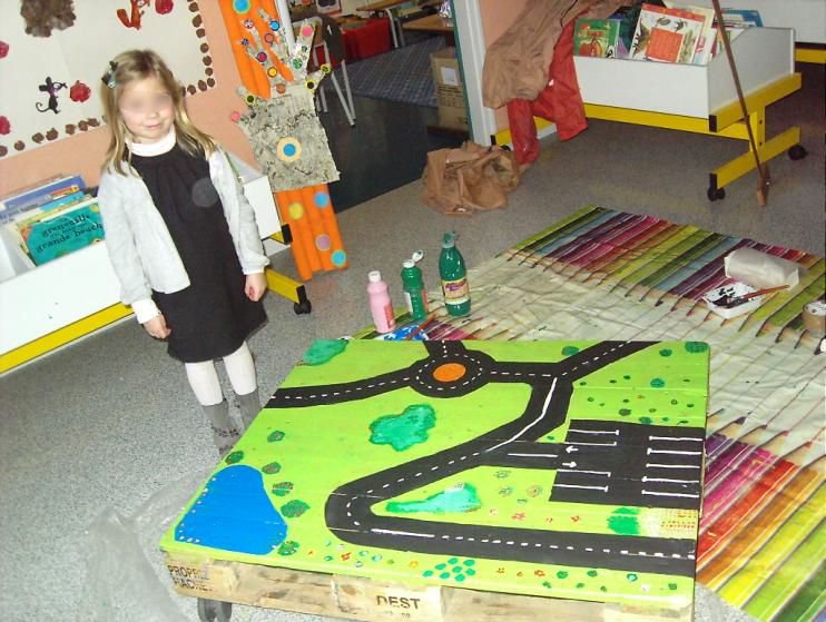 Absence de coin véhicules dans la classe Un bac seulement de petites voitures très usagées. Objectif : créer un véritable espace voitures et si possible mobile pour pouvoir l'utiliser en dehors de la classe (cour de récréation au beau temps). |