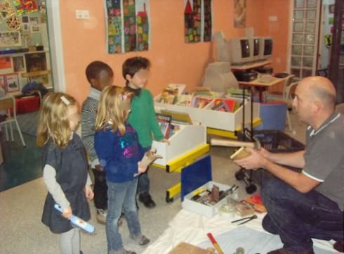 Séance de découverte : laisser jouer librement les élèves pour qu'ils s'approprient les nouveaux matériaux mis à leur disposition.