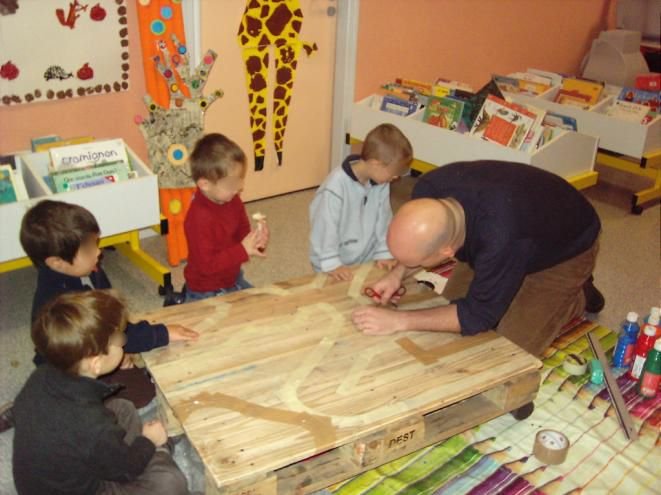 Point de départ : récupération par la maîtresse d'une palette pleine idéale pour créer un coin véhicules |
