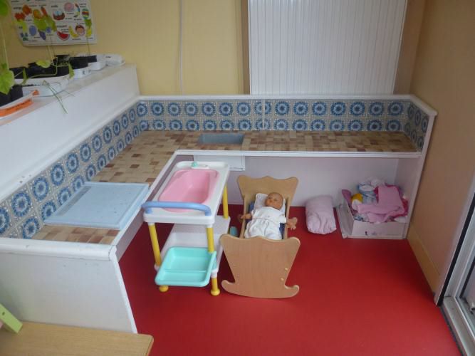 Je suis satisfaite du résultat et les enfants aussi, surtout ! Depuis décembre, le coin maison accueille un atelier d'apprentissage, il n'est plus occupé uniquement au moment de l'accueil ou des quelques temps libres. |