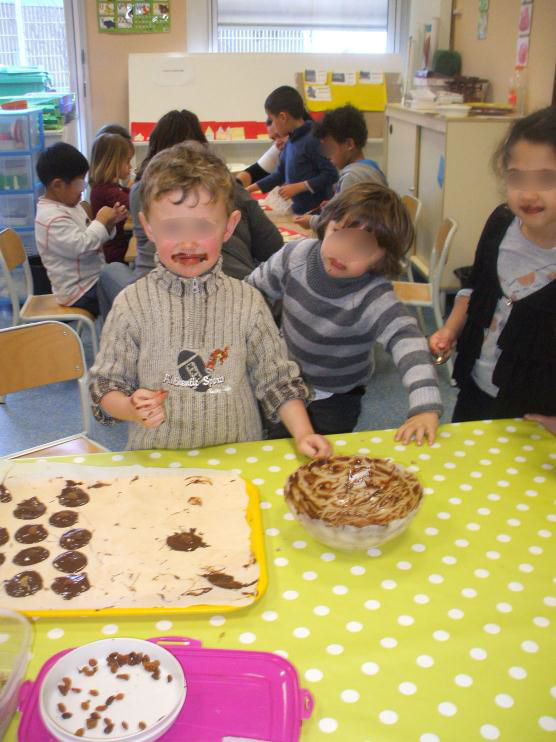 | En parallèle avec cet atelier, nous avons fait un atelier cuisine et avons confectionné des mendiants pour pouvoir acheter une maison de poupée. |