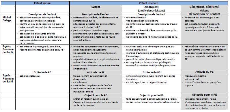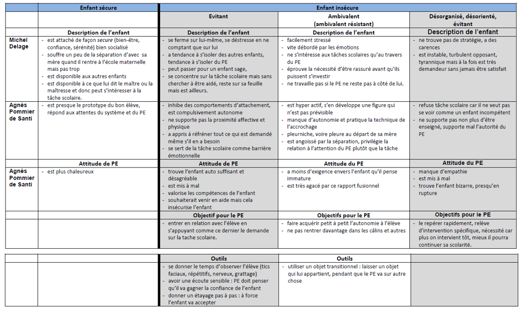 Agnès Pommier de Santi et Michel Delage ont établi des profils d'élèves en lien avec la théorie d'attachement. Cliquez sur l'image