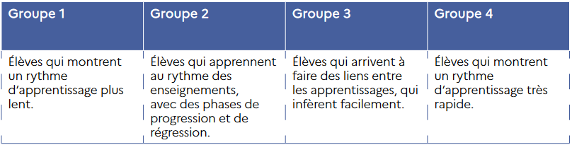 | Différencier sa pédagogie Vademecum Enseigner en Grande section dédoublée Plus disponible en GS dédoublée, le professeur est plus à même de s’adapter aux 4 groupes de besoins constitutifs de toute classe. Ces groupes de besoins peuvent être différents selon les différents domaines d'enseignement et sont évolutifs tout au long de l'année, au fur et à mesure des apprentissages des élèves. |