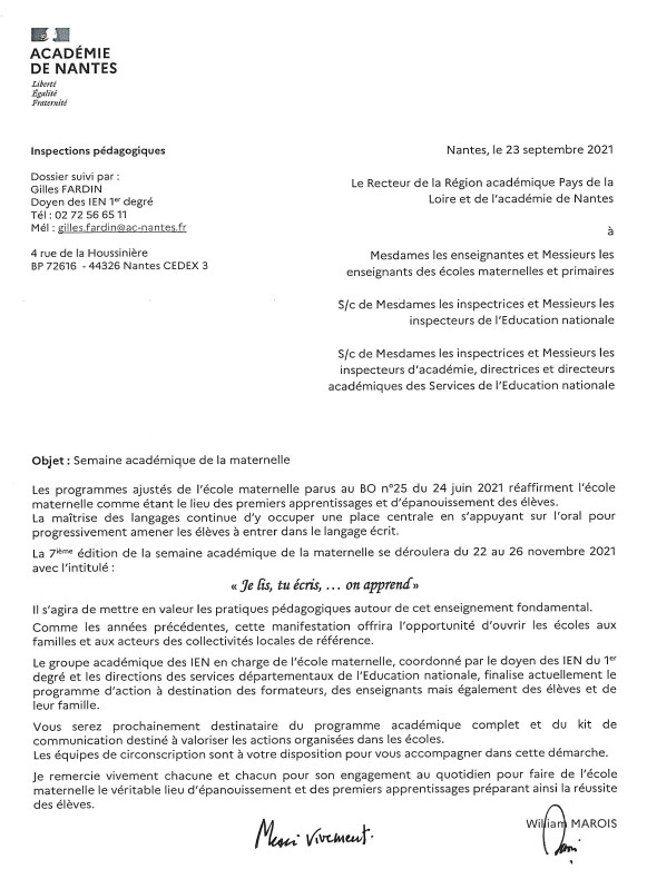 La 7è édition de la semaine académique de l'école maternelle se déroulera du 22 au 26 novembre.