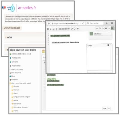 Le Pad (document créé) se synchronise au fur et à mesure de la frappe. Il est visible par toutes les autres personnes qui sont connectées sur la même page. Cela permet d'effectuer un travail collaboratif entre quelques élèves.