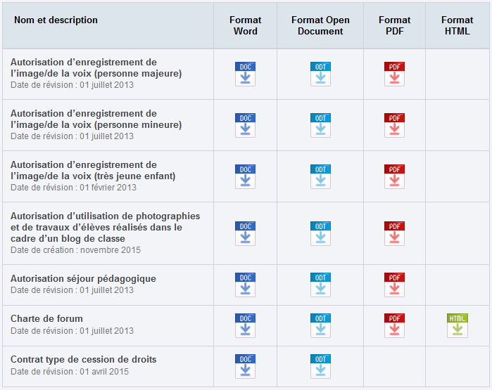 Si vous souhaitez avoir des fiches types à remplir pour différentes autorisations de diffusion, Internet Responsable vous propose sa boîte à outils : autorisations d'enregistrement de l'image, de la voix, de productions d'une personne mineure ou majeure