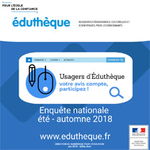 Pour mieux comprendre les usages réels et les attentes, notamment des enseignants, à l’égard des ressources d’Éduthèque, tous partenaires confondus, la Direction du Numérique pour l'Education lance du 20 juin au 20 septembre 2018 une enquête en ligne « usagers Éduthèque ».