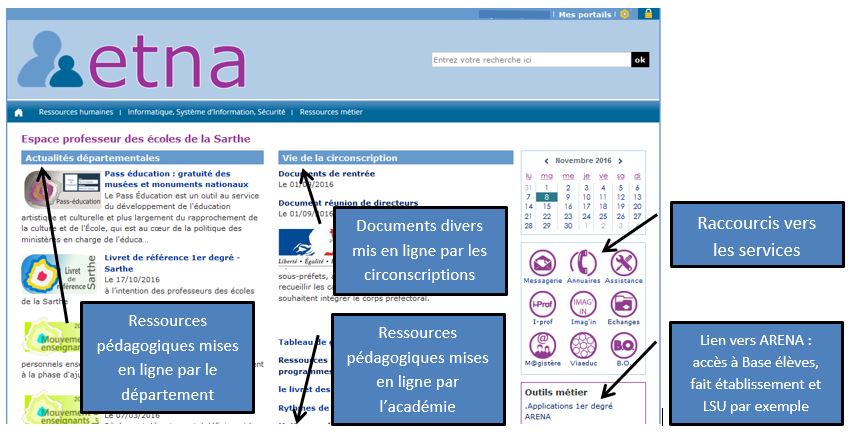 ETNA est organisé suivant différentes rubriques qui permettent de retrouver aisément les informations essentielles.