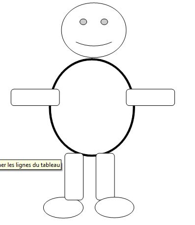 Grâce aux outils permettant de réaliser des formes sur le traitement de texte ou à l'aide d'un logiciel à dessin, dessiner un bonhomme. Les élèves devront le colorier en cliquant sur les icônes proposant des couleurs.