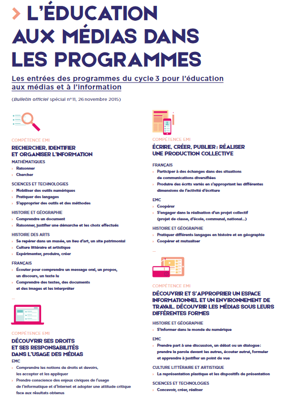 L'EMI et le socle commun : synthèse des programmes