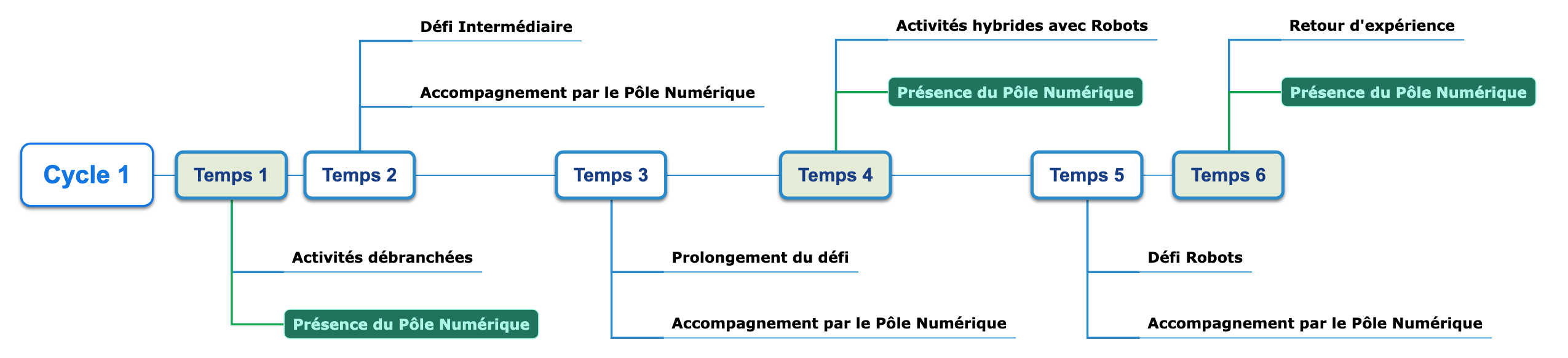 Les ERUN (Enseignants Référents pour les Usages du Numérique) et le CPD Numérique interviendront sur des temps identifiés dans la classe pour guider les élèves et les enseignants dans cette découverte.