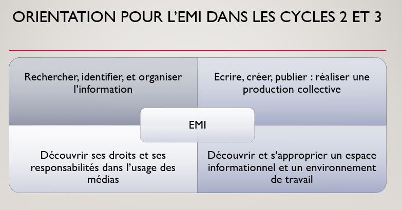 Vous trouverez sur Eduscol les programmes en EMI avec pour chaque cycle :