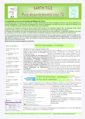 Le numérique au service des besoins spécifiques des élèves : c'est le thème principal du dernier bulletin du Pôle Tice départemental, réalisé en collaboration avec l'équipe de la circonscription ASH. Vous y trouverez: -des reportages sur des activités en Clis avec des tablettes tactiles ou l'Espace Numérique de travail e-primo -des pistes pour améliorer l'ergonomie sur un ordinateur ou une tablette en utilisant les paramétrages existants ou des logiciels.