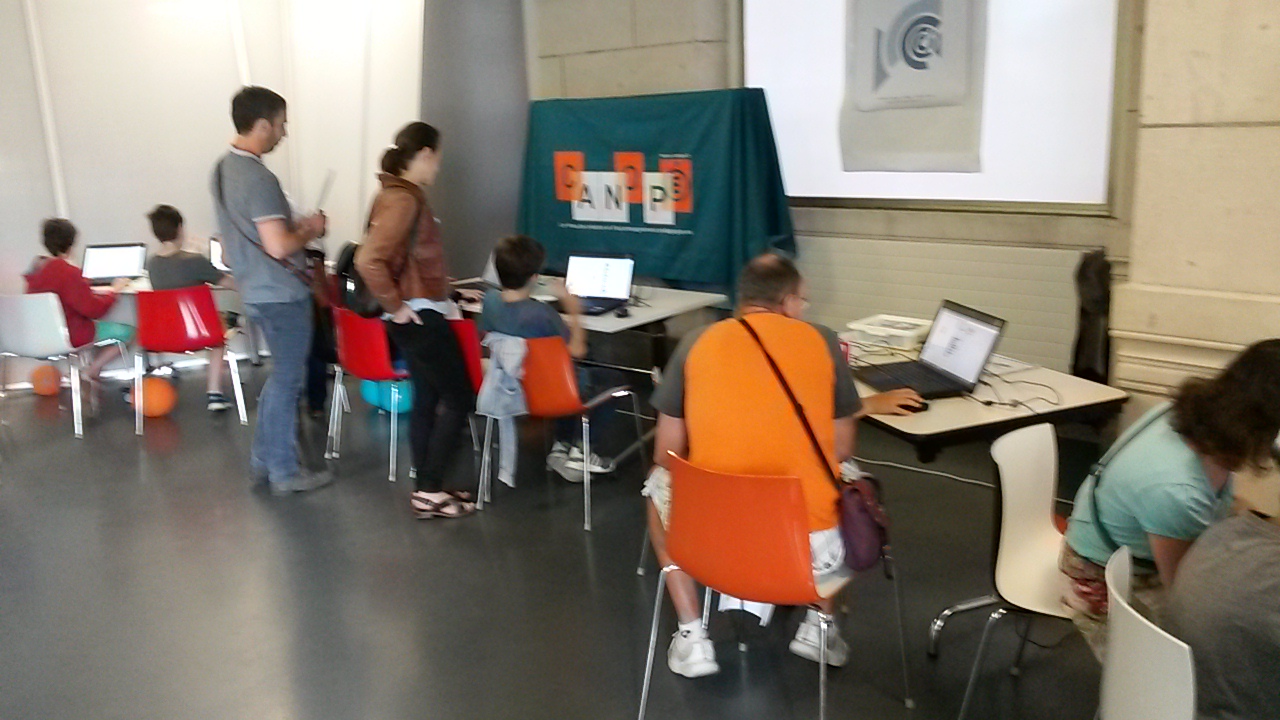 - Atelier " "Scratch, Lego WeDo, Blue Bot..." : animé par Alain Guette et Yannick Gourdin de l'atelier CANOPE de la Sarthe, programmer un petit robot bleu pour sortir d'un labyrinthe, programmer sous scratch le déplacement d'un joueur de football qui défend ses buts, programmer le petit robot Bluebot…