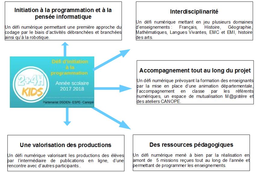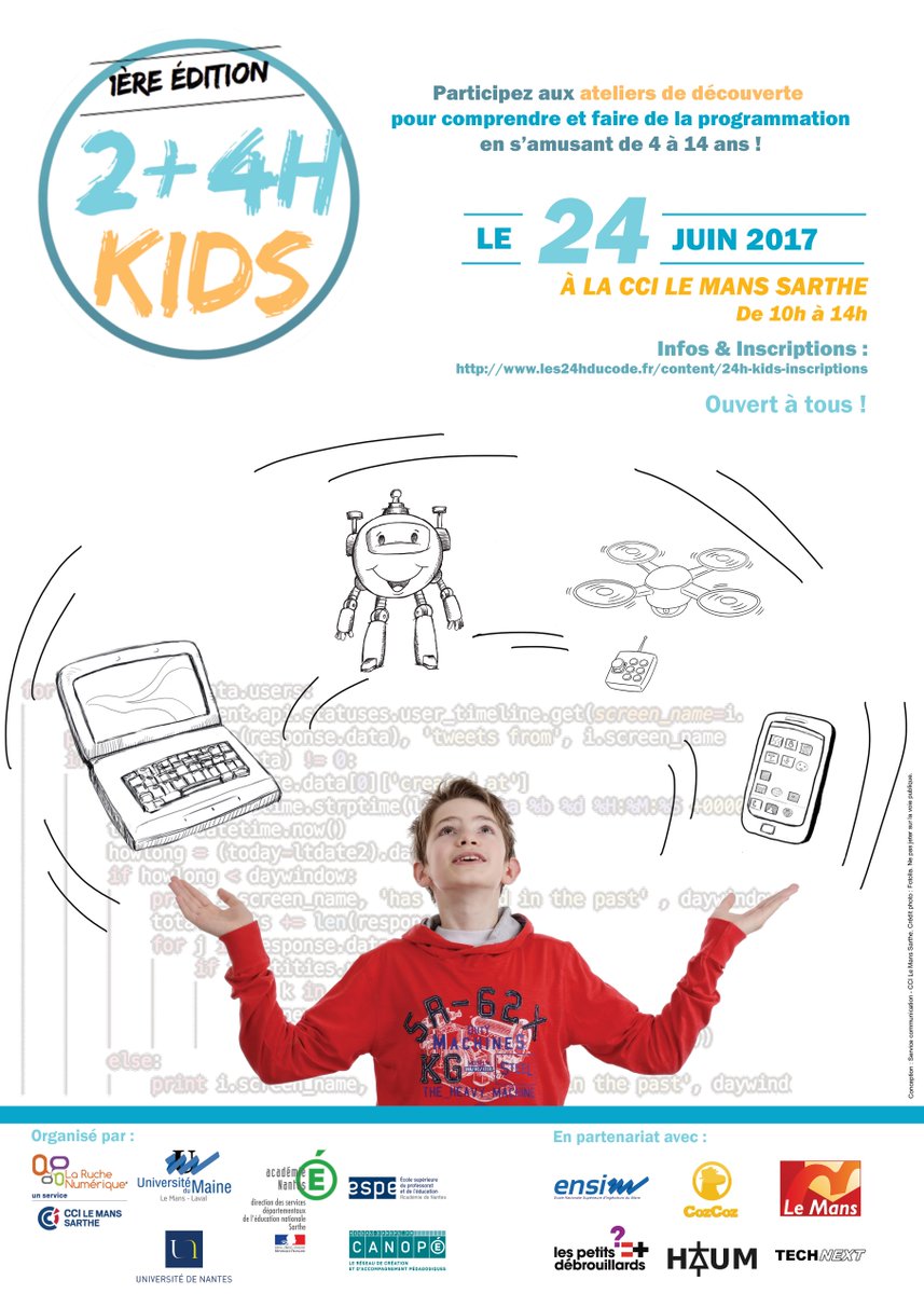 Pour favoriser le développement des compétences visées, la DSDEN de la Sarthe s'associe à l'ESPE de l'académie de Nantes et au réseau CANOPE pour organiser la deuxième édition de 2+4h Kids « Chronocode ».