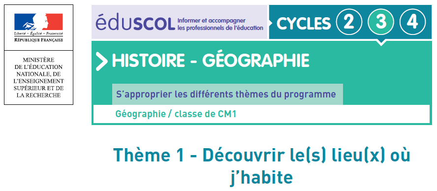 • acquérir les premiers repères géographiques ; la caractérisation de l’espace singulier où habite l’élève par l’utilisation d’un vocabulaire spécifique adapté ;