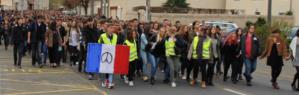 Au lycée, les élèves ont souhaité se mobiliser pour dénoncer ces évènements. Par solidarité, ils ont défilé silencieusement dans les rues de Sablé sur Sarthe.