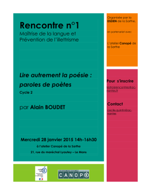 Pour les enseignants de cycle 2 : mercredi 28 janvier 2015 (14h- 16h30) à l'Atelier Canopé de la Sarthe, 21 rue du maréchal Lyautey, Le Mans.