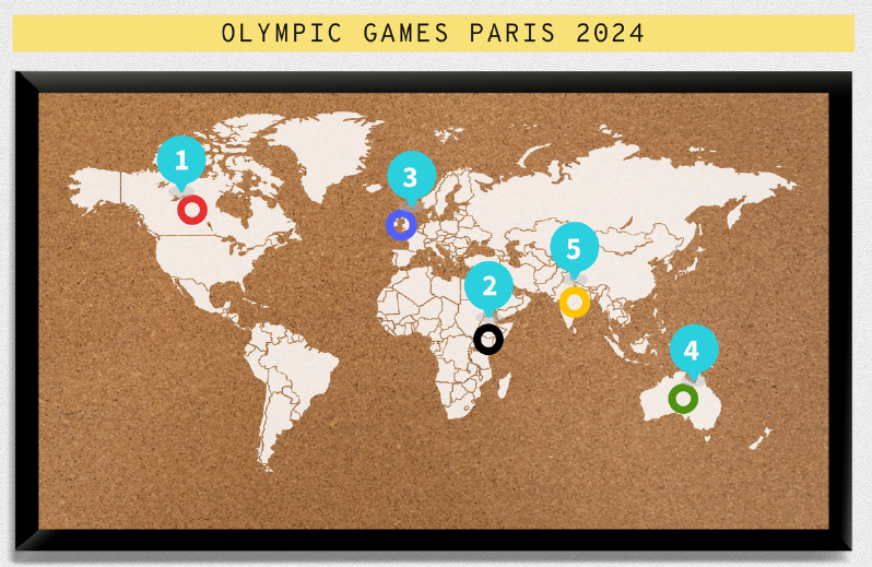 Réalisez les énigmes et retrouver tous les anneaux olympiques qui se cachent aux 4 coins du monde.