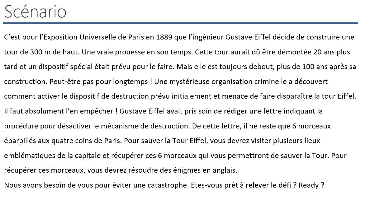Récupérez tous les morceaux de la lettre de Gustave Eiffel éparpillés aux 4 coins de la capitale et sauvez la Tour Eiffel!