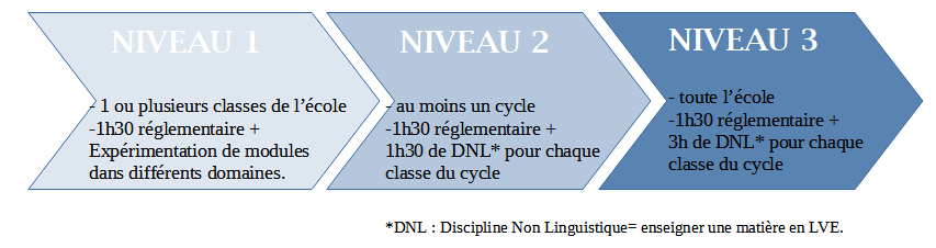 Le groupe académique Langues Vivantes et Ouverture Internationale propose un accompagnement des équipes à la mise en œuvre de cet enseignement innovant. Il s’agit d’augmenter le temps d’enseignement des langues vivantes mais aussi de dynamiser cet enseignement en favorisant une approche « actionnelle » où les élèves sont acteurs de leurs apprentissages.