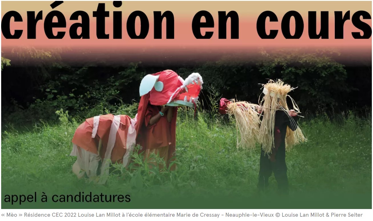 « Création en cours » est un programme national commun aux ministères chargés de l'Éducation nationale et de la Culture, permettant à des jeunes artistes de développer un projet de recherche et de création originale avec des élèves scolarisés dans des écoles rurales ou éloignées de ressources culturelles.