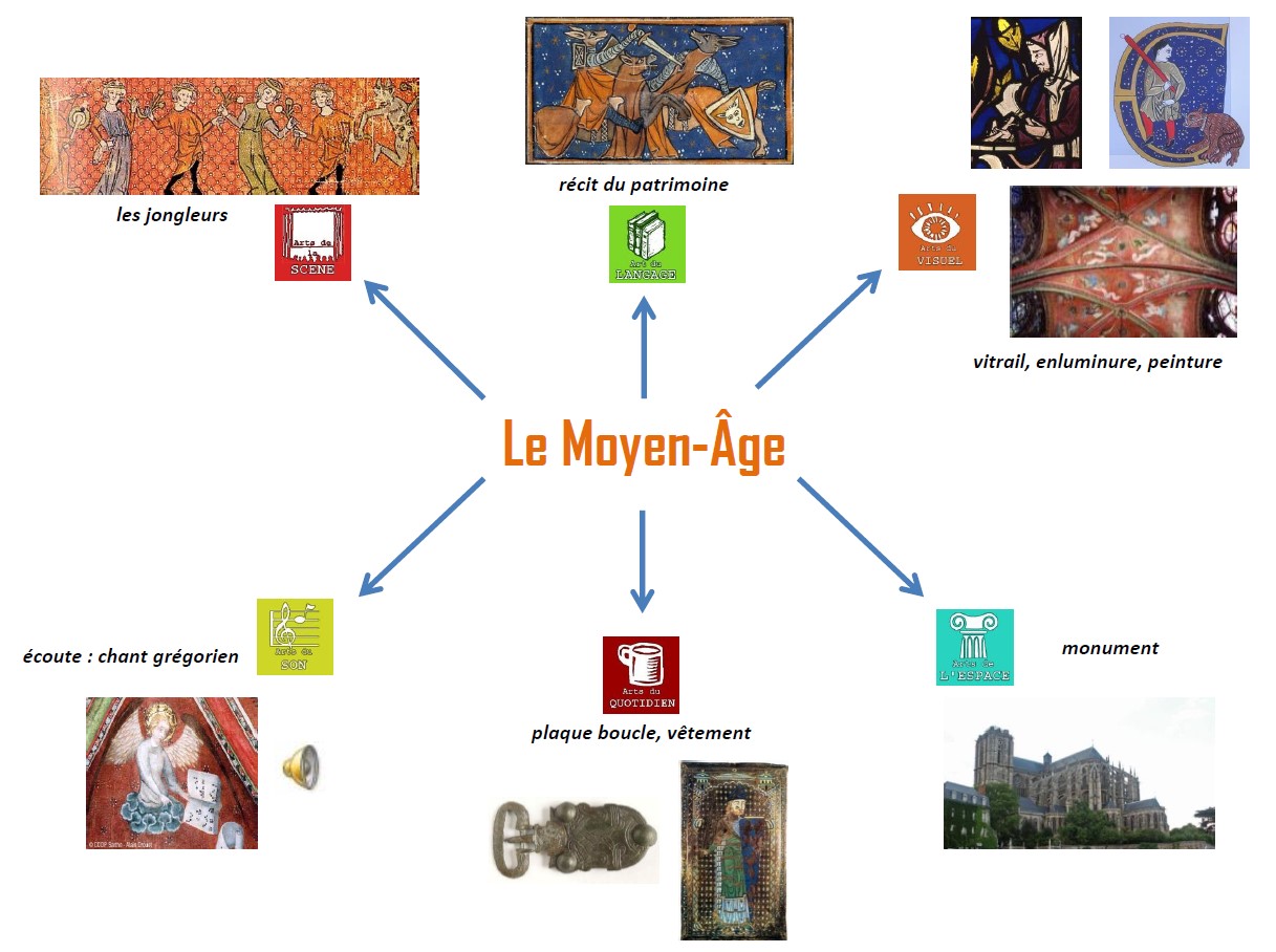 À l'école primaire et au collège, au moins une fois par cycle, l'élève aborde un des grands domaines des arts et de la culture.