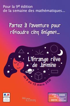 La semaine nationale des Mathématiques se déroulera du 9 au 15 mars 2020. Elle a pour objectif de de donner une image actuelle, vivante et attractive des mathématiques. Cette année la Semaine des mathématiques sera un événement majeur de l'Année des mathématiques et son thème sera "Mettons en scène les mathématiques".