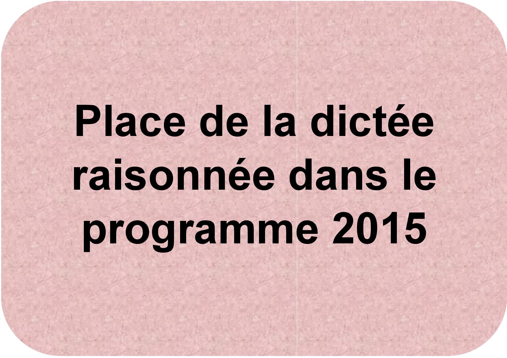 Cycle 2  METTRE EN PLACE UNE DICTEE RAISONNEE QUOTIDIENNE EN CE2