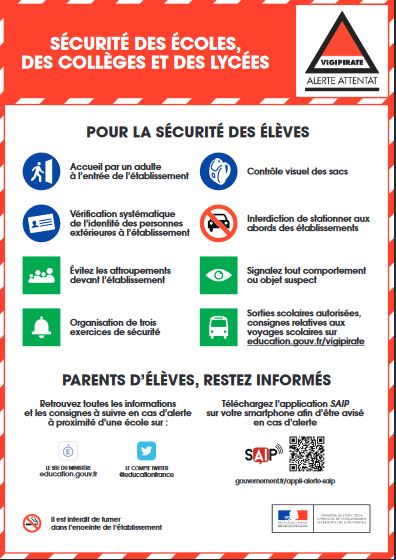 "Plan de sécurité des écoles, des collèges et des lycées"