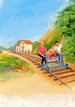 Cette pratique permet de pénétrer dans le milieu naturel à l'aide d'une draisine propulsée à l'aide de deux pédaliers. La taille des vélos permet uniquement aux CM1 - CM2 de fonctionner.