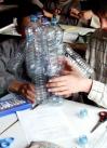 fil de fer, ruban adhésif, bouteilles en plastique, carton, papier