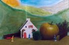 On a mis une pomme au premier plan et Alexandre au deuxième plan