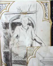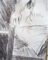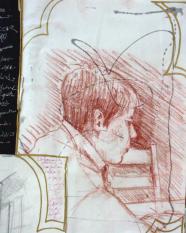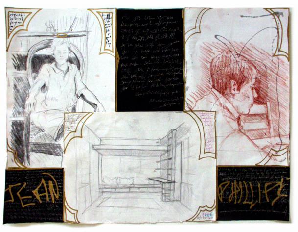 fusain, sanguine et feutre doré - 50 x 65 cm