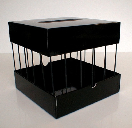 J'ai fait ce projet en rapport avec l'actualité. J'ai voulu dire que si jamais les français votaient pour Le Pen et qu'il devenait président de la République, ce serait emprisonner la France et la démocratie et toutes les valeurs qu'elles représentent (liberté - égalité - fraternité ). J'ai voulu faire passer un message pour dénoncer certains aspects de la politique. Je suis parti d'une image vue dans un des classeurs de la documentation de la classe. C'est une photo de Paris depuis l'intérieur du Centre Pompidou, du Musée National d'Art Moderne. Les montants de métal partageant les vitres, m'ont fait penser à la vue que l'on pouvait avoir d'une prison. On voit l'extérieur à travers des barreaux. Donc, j'ai repris cette idée de structure soutenue par des barreaux pour l'image d'une prison (couleur noire). Cette urne peut aussi vouloir dire que les valeurs écrites sur le bulletin de vote (fascisme, racisme, intolérance) ne doivent être mises qu'en prison. J'ai choisi la couleur noire pour que le bulletin (blanc) ressorte plus. Après avoir fait ce travail, je me suis rappelé de l'artiste K. Wodiczko. Lui aussi a fait passer des messages pour les sans-papiers et les SDF.