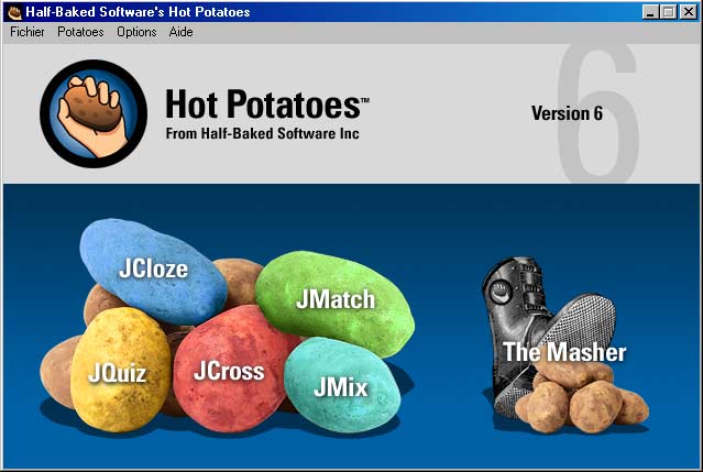 HotPotatoes est un logiciel de création d'exercices qui propose 5 types d'exercices différents (textes à trous, QCM / quiz, mots croisés, exercices de remise en ordre, exercices d'association). Il a été conçu par des enseignants de l'Université de Victoria au Canada, et il est utilisable gratuitement à condition de s'enregistrer comme utilisateur. On reçoit alors un code permettant d'avoir accès à toutes les options du logiciel. On peut le télécharger à l'adresse suivante : http://web.uvic.ca/hrd/hotpot/. Il existe de nombreux sites qui lui sont consacrés. Et la version 6 fonctionne en cyrillique ! |