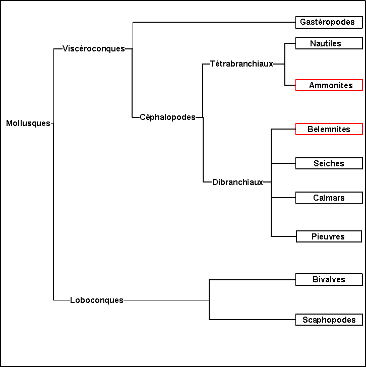 coquille, Coquille absente, Coquille réduite à une "plume" chitineuse. Coquille à l'intérieur du corps, Coquille légère et calcaire (os de seiche). Rostre volumineux Couronne de tentacules entourant une bouche pourvue de deux mandibules, Siphon de la coquille tourné vers l'avant du corps. Coquille cloisonnée, Tête bien développée avec des organes sensoriels