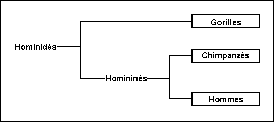 Bassin large et fémur de bipède, pied sans pouce opposable, course sur le premier doigt, angle facial ouvert, fort développement cérébral, survie dépendant de la transmission d'une culture, adolescence tardive.