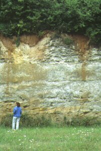 la coupe ) se sont formées au cours des glaciations du Quaternaire, puis se sont comblées par des sables et argiles continentaux. |