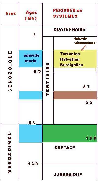 Repérez en bleu, les épisodes marins.( échelle avec réponse ) |