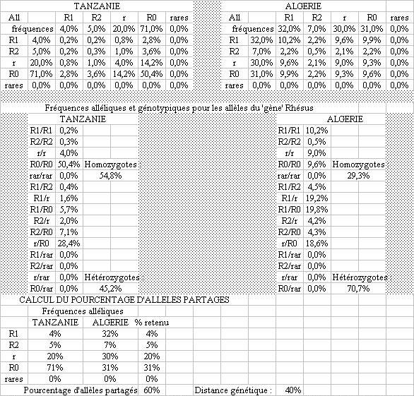 Sources : Les Hommes passé, présent, conditionnel, Génétique et évolution moléculaire, travaux pratiques assistés par ordinateur. Références bibliographiques